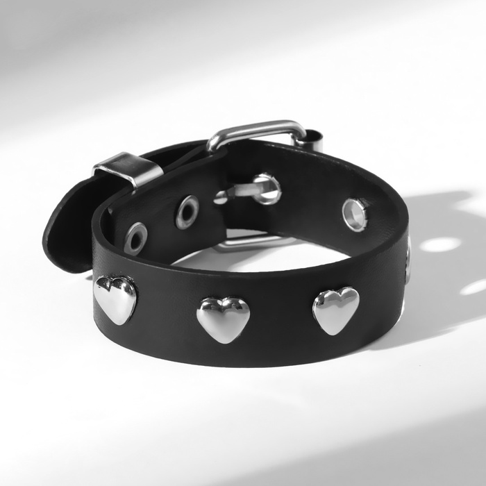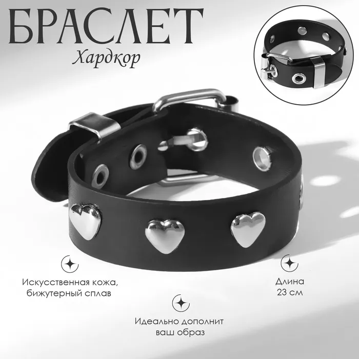 Браслет кожа «Хардкор» сердца, чёрный в серебре — Характеристики