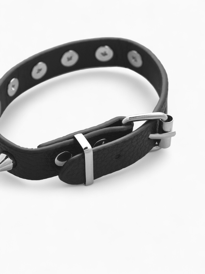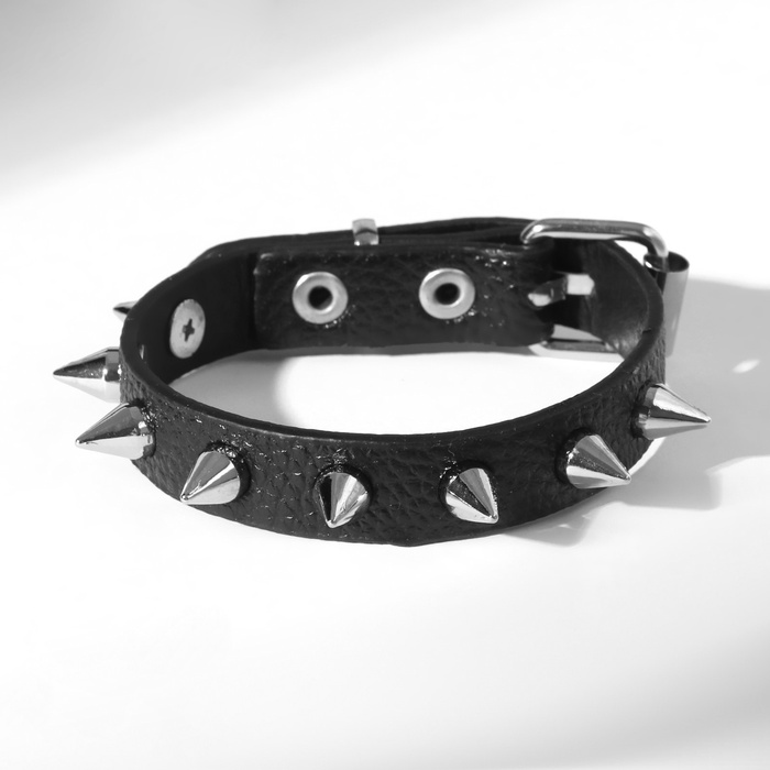 Браслет кожа «Хардкор» шипы, цвет чёрный в серебре — Характеристики