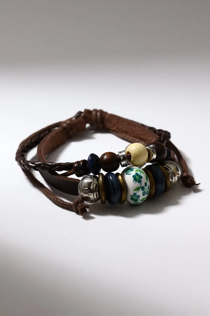 Браслет кожа «Хиппи» бусина, коричневый, d=6 см — Характеристики