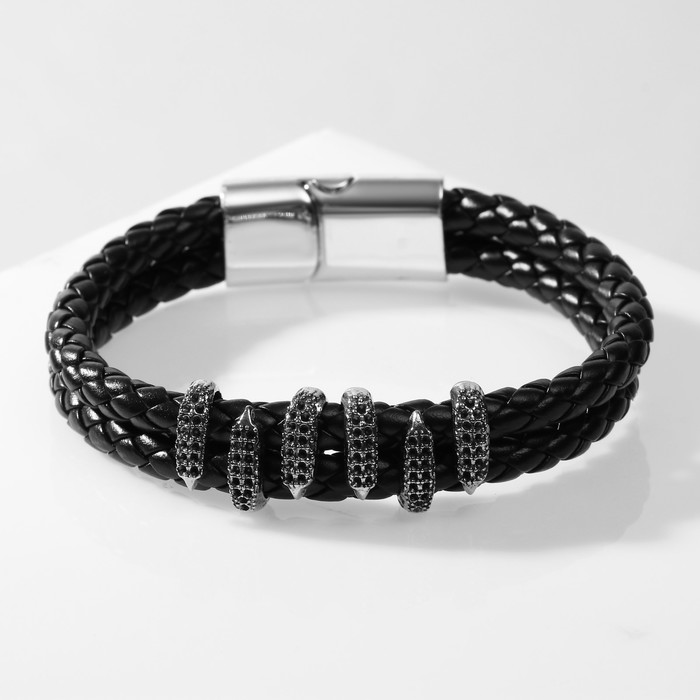 Браслет кожа «Когти» 2 нити, серебряно-чёрный, 21 см — Характеристики
