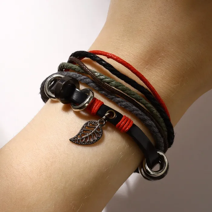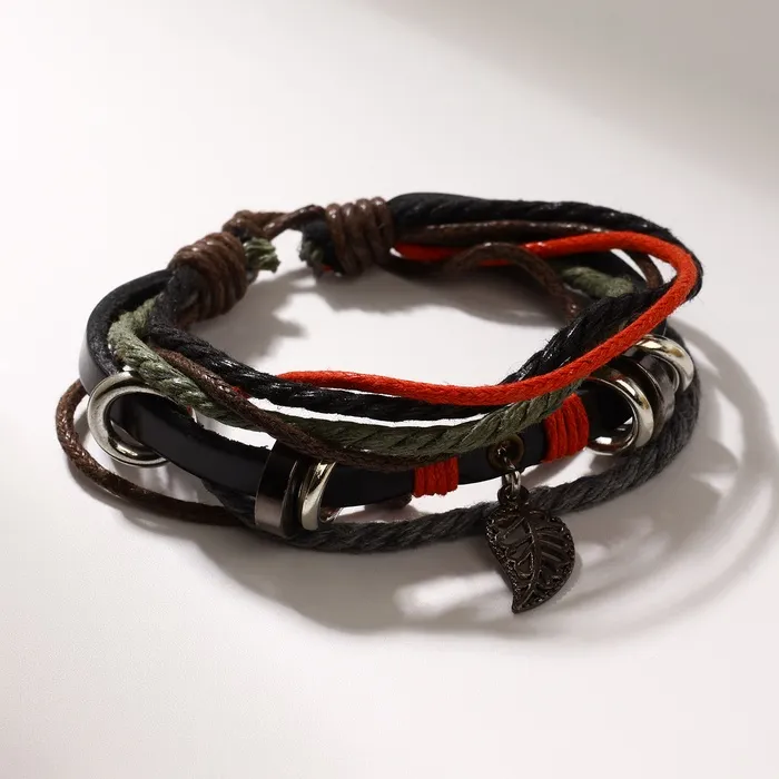 Браслет кожа «Лист» резной, 6 нитей, цветной, d=5 см — Характеристики