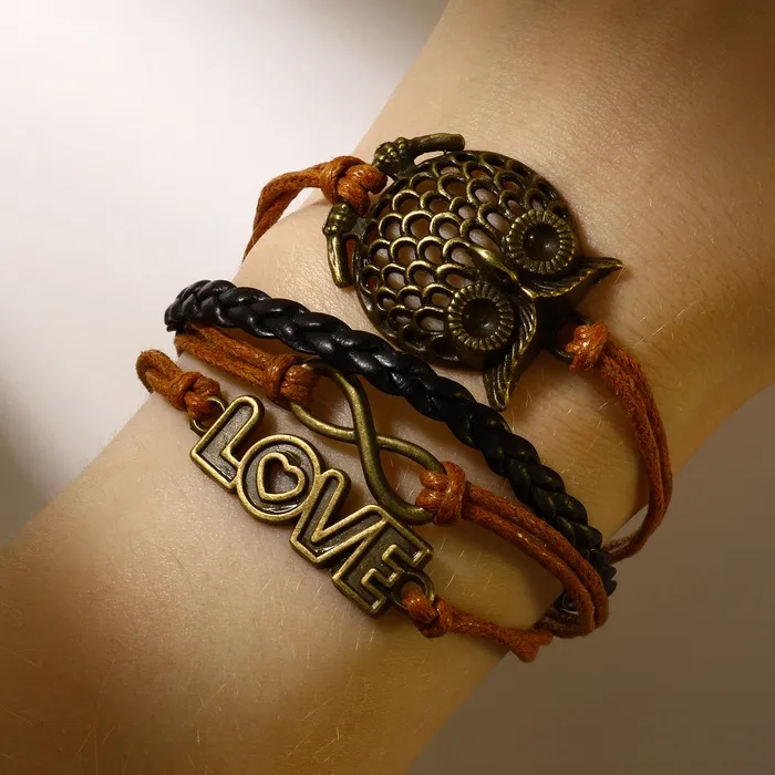 Браслет кожа «Магия знаков» сова и бесконечность, L=17 см, коричнево-рыжий — Характеристики