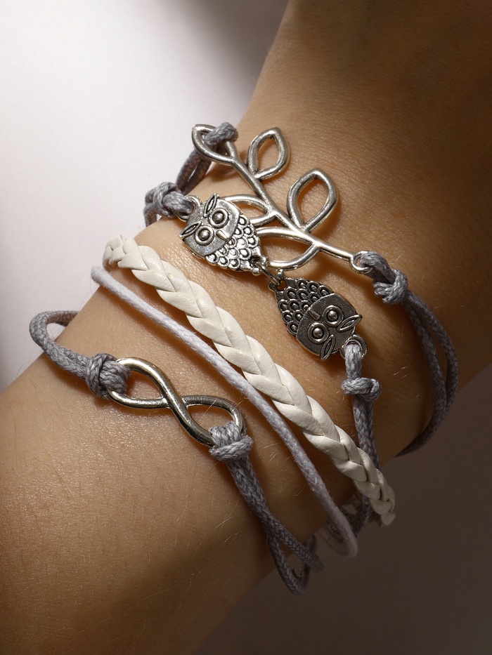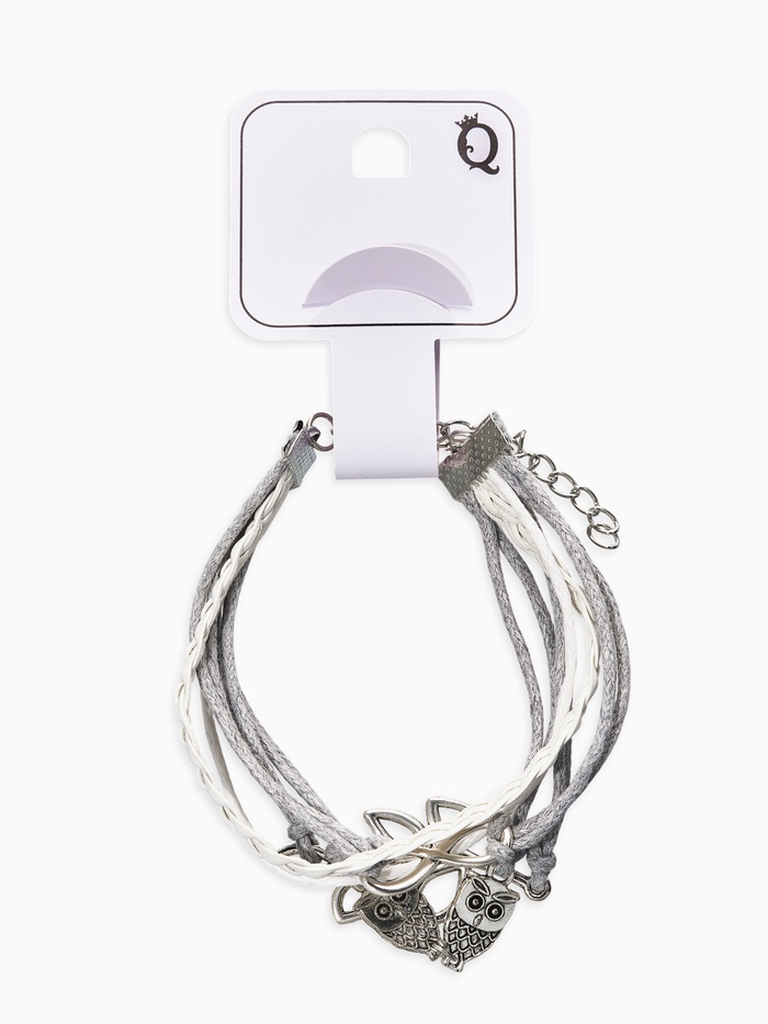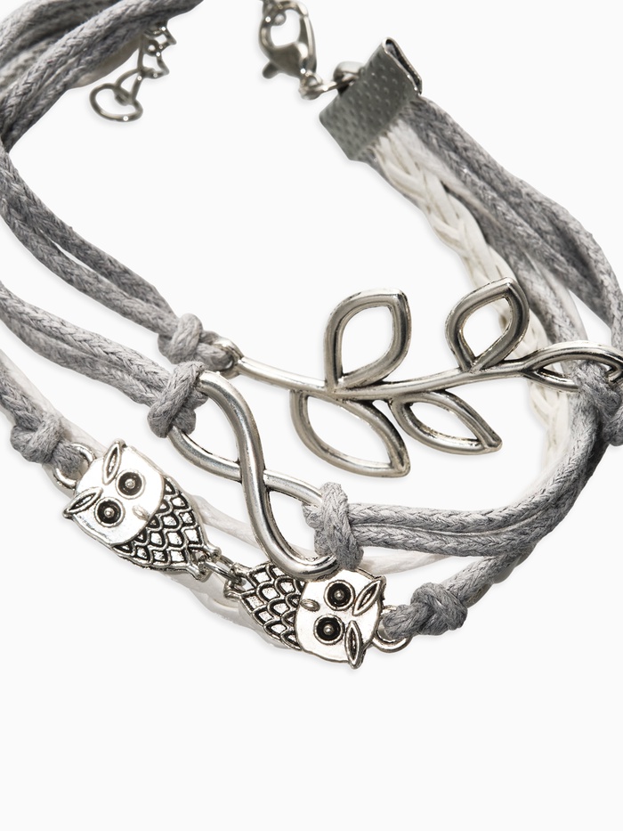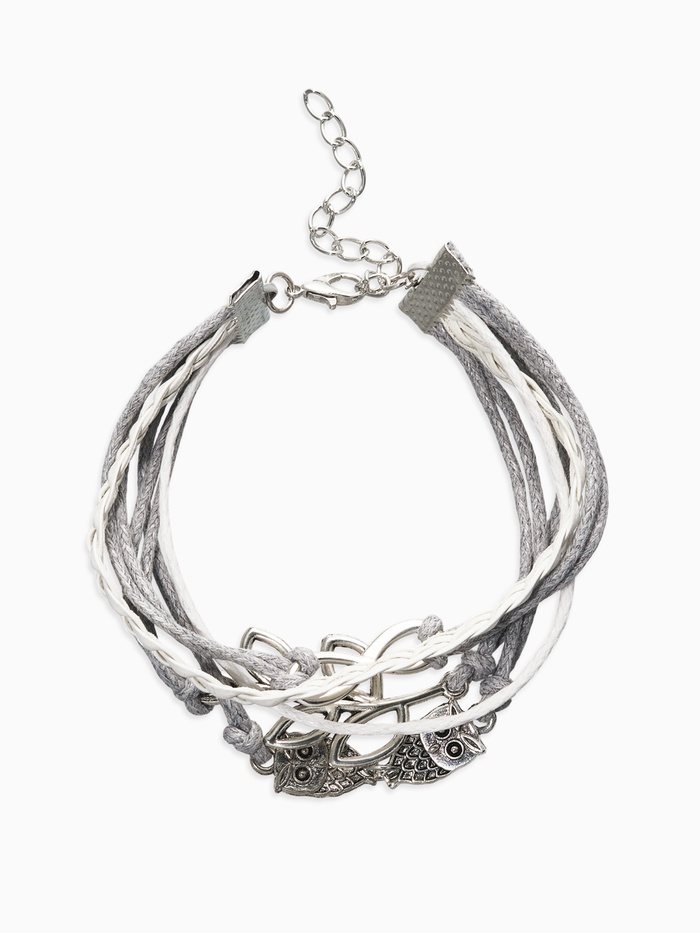 Браслет кожа «Магия знаков» совушки, 5 нитей, бело-серый, L=20 см — Характеристики