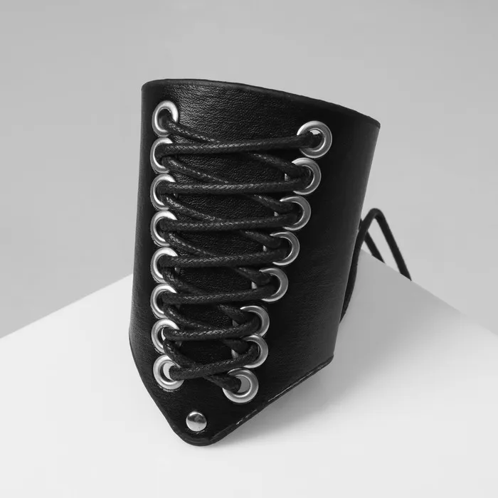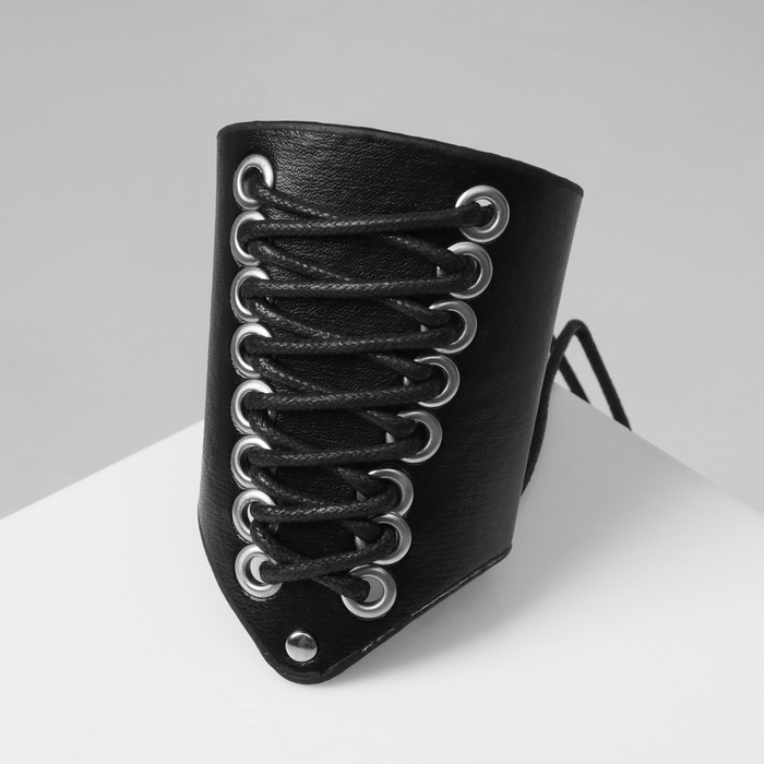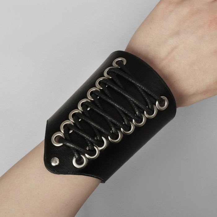 Браслет кожа «Манжета» на шнуровке, цвет чёрно-серебряный — Характеристики