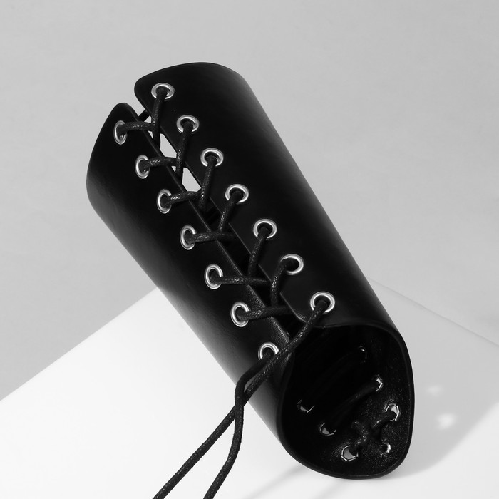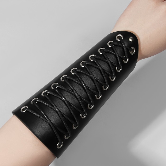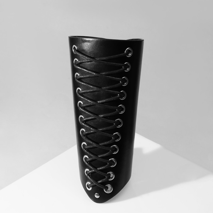 Браслет кожа «Манжета» на шнуровке, высокий, серебряно-чёрный — Характеристики