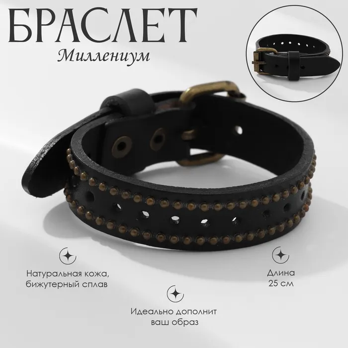 Браслет кожа «Миллениум» ремешок, чёрный — Характеристики