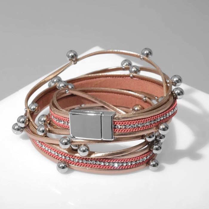 Браслет кожа «На магните» бусинки, бело-бежевый в серебре, 38 см — Характеристики