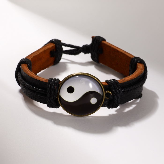 Браслет кожа «Новый день» инь-ян, чёрно-коричневый, 6 см