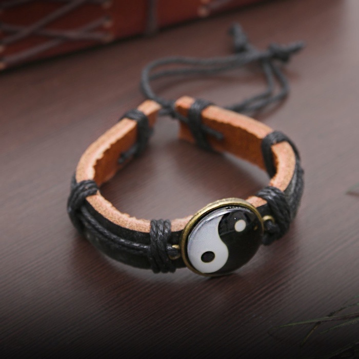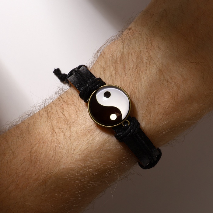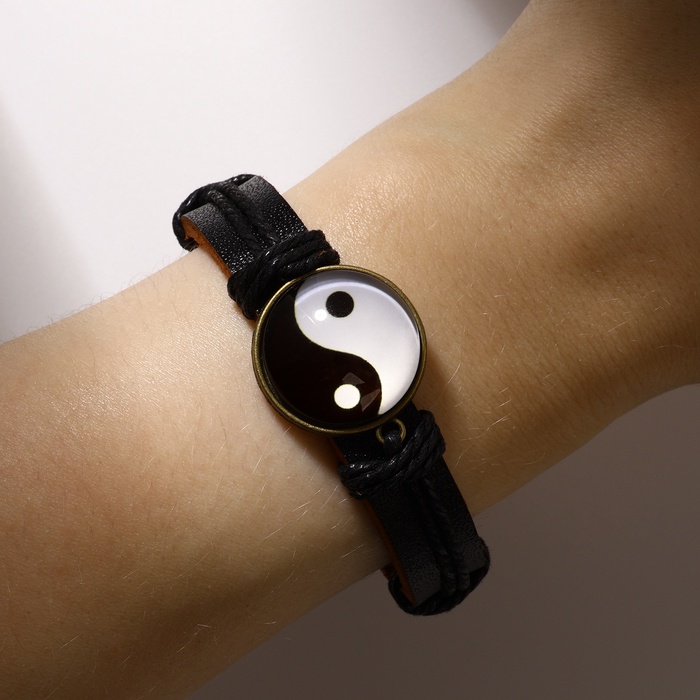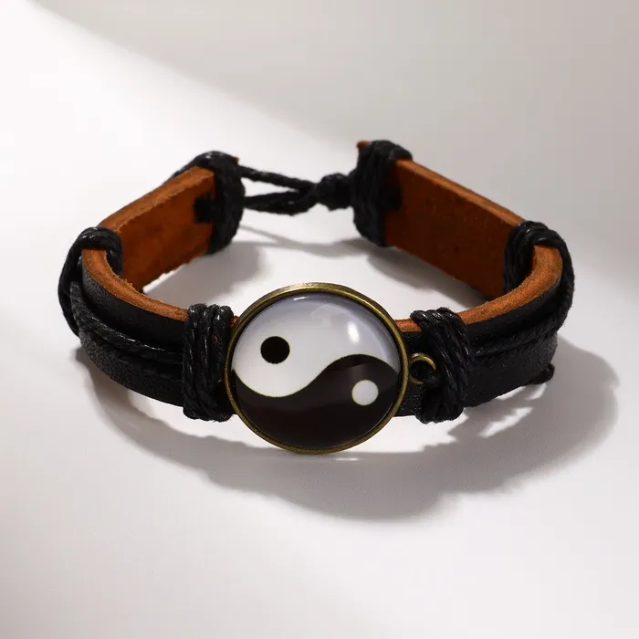 Браслет кожа «Новый день» инь-ян, чёрно-коричневый, 6 см — Характеристики
