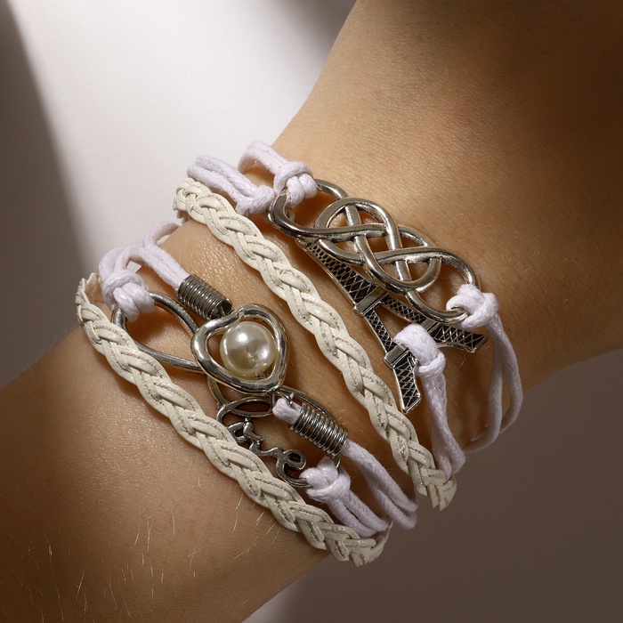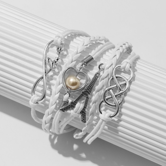 Браслет кожа «Париж - магия знаков», 6 нитей, L=20 см, белый — Характеристики