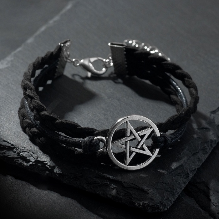Браслет кожа «Пентаграмма» защита, цвет чёрный в серебре, L=17 см — Характеристики