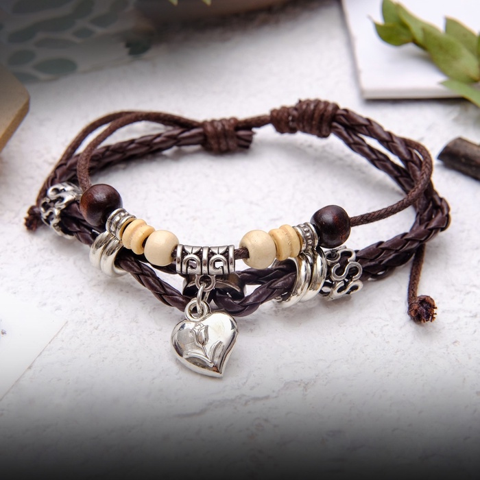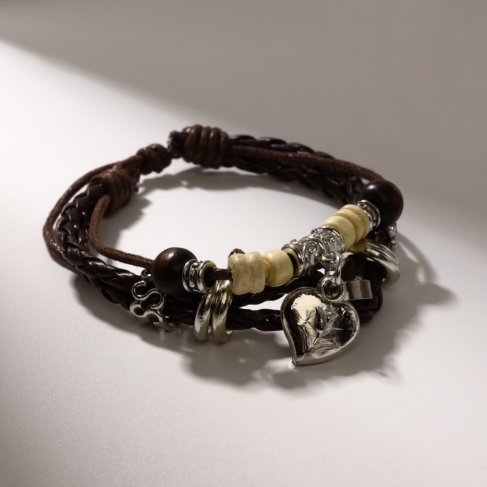 Браслет кожа «Переплетение» с подвеской, сердце, коричневый, d=8 см — Характеристики