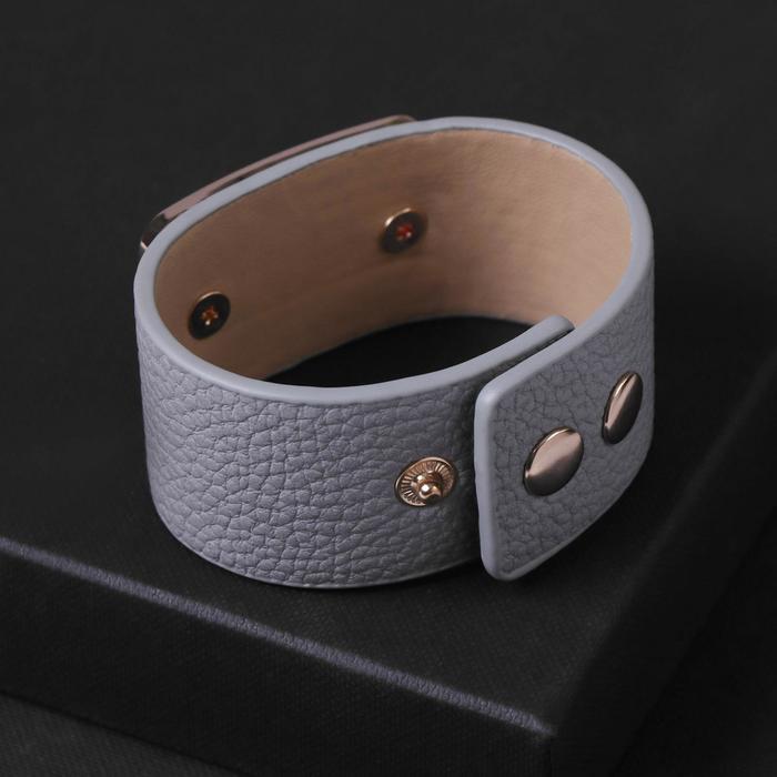 Браслет кожа «Помпеи» стразы, цвет бело-серый в золоте, 21 см — Характеристики