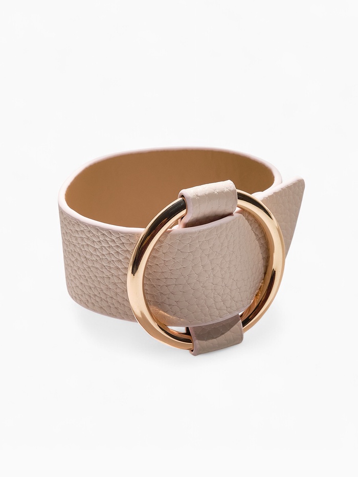 Браслет кожа «Помпеи» захват, светло-бежевый в золоте, 24 см