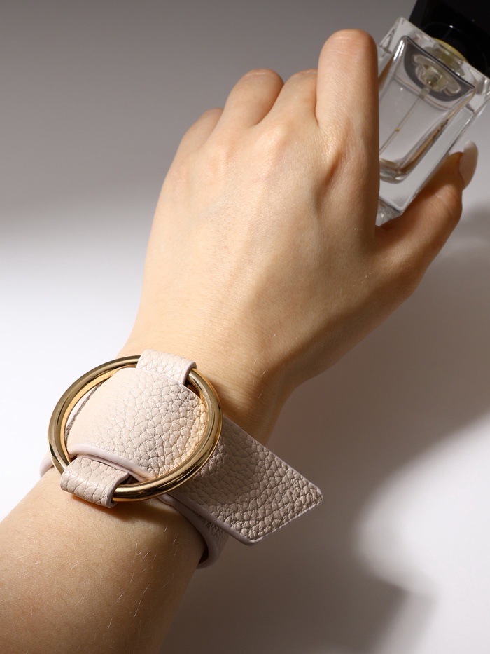 Браслет кожа «Помпеи» захват, светло-бежевый в золоте, 24 см — Характеристики