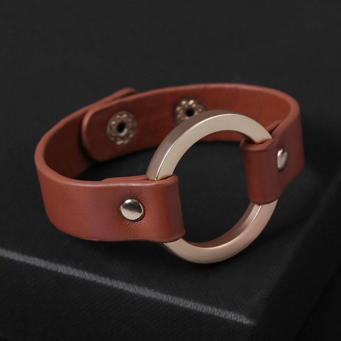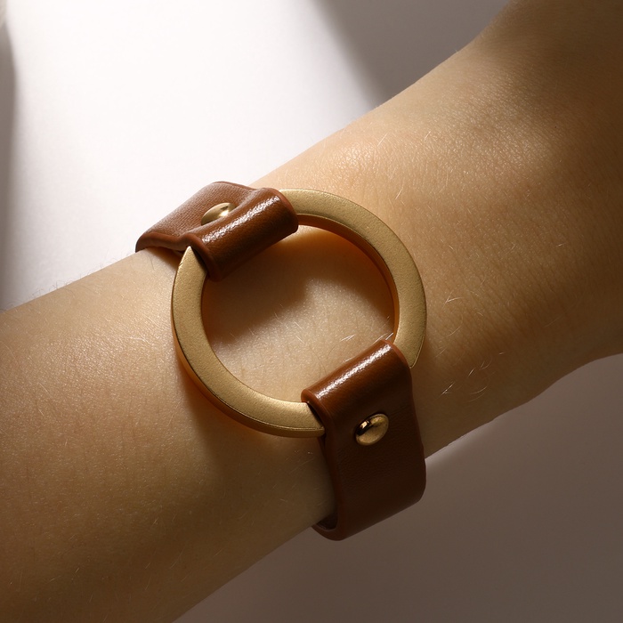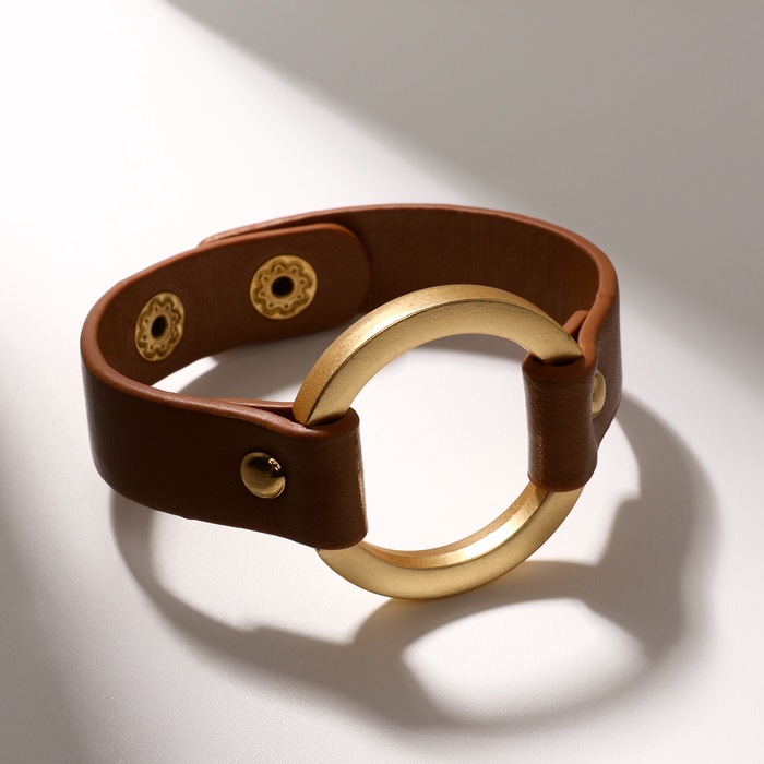 Браслет кожа «Помпеи» заклёпки, коричневый в золоте, 21 см — Характеристики
