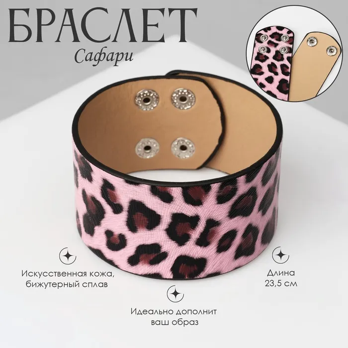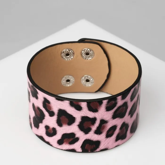 Браслет кожа «Сафари» леопард, широкий, цвет чёрно-розовый, 23,5 см — Характеристики