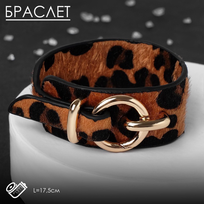 Браслет кожа «Сафари» леопард, цвет чёрно-коричневый, 17,5 см — Характеристики