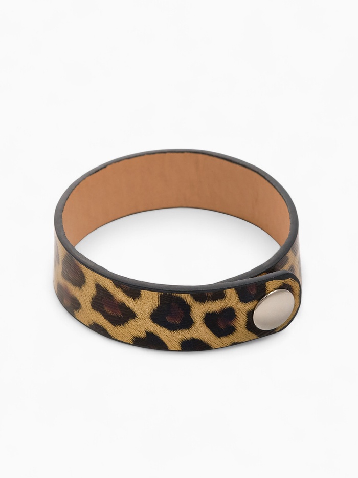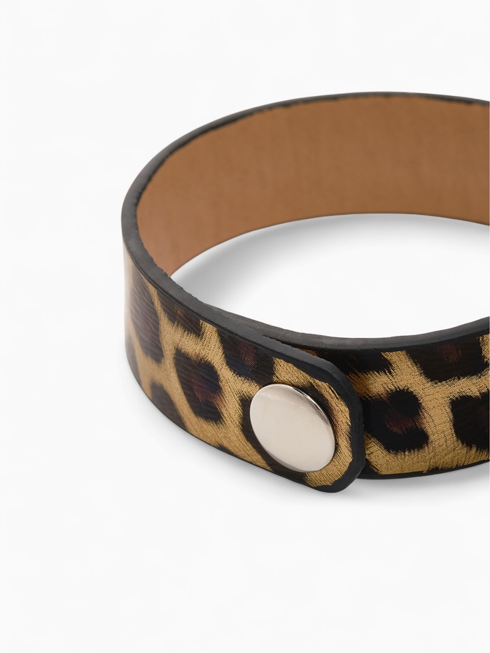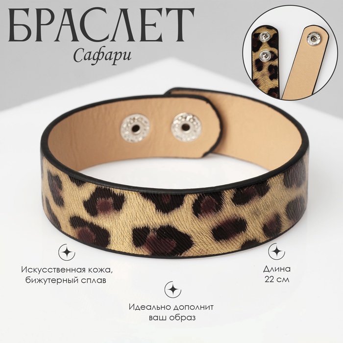 Браслет кожа «Сафари» леопард, цвет чёрно-золотой, 22 см — Характеристики