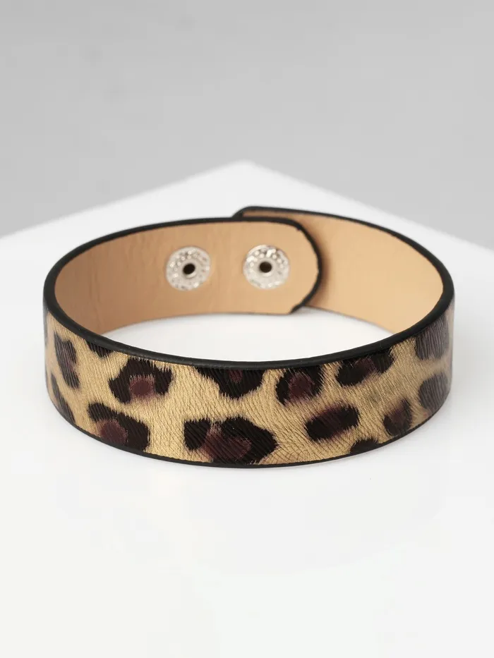Браслет кожа «Сафари» леопард, цвет чёрно-золотой, 22 см — Характеристики