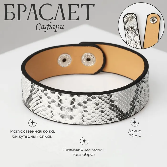 Браслет кожа «Сафари» питон, цвет бело-чёрный, 22 см — Характеристики