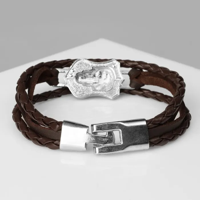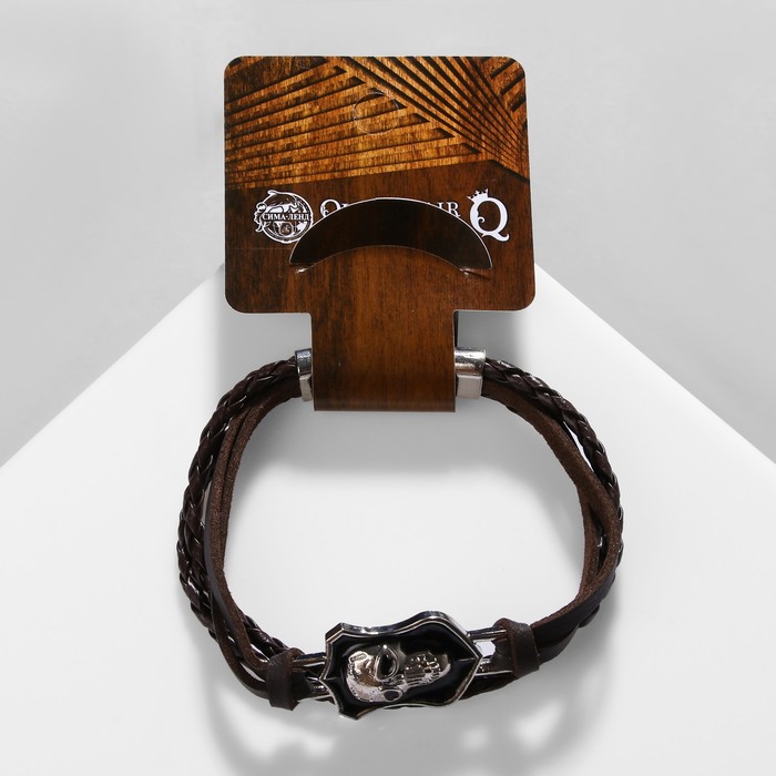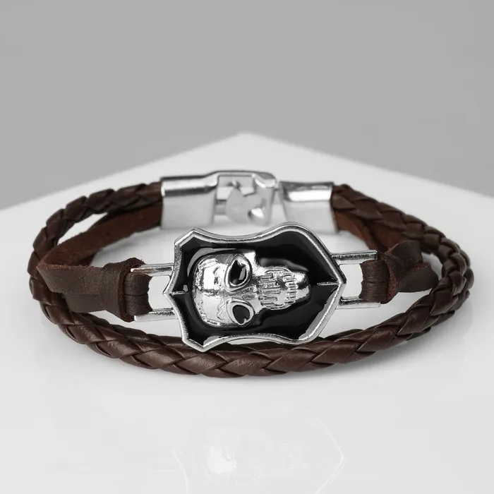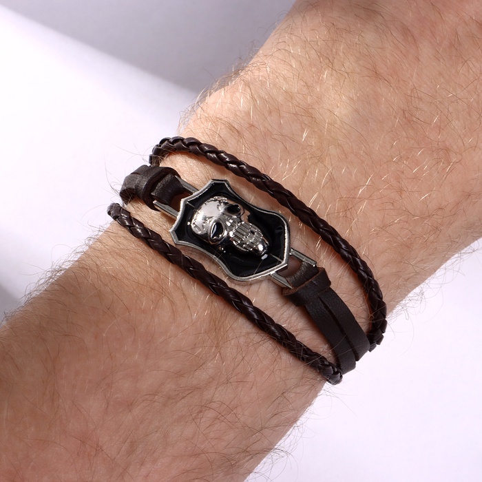 Браслет кожаный «Гордон» череп, коричневый с серебром, 21.5 см — Характеристики