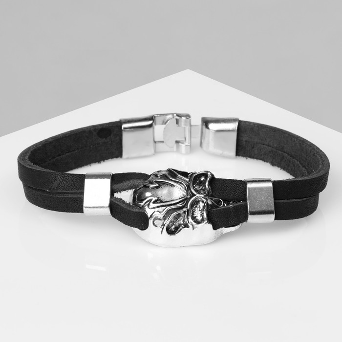 Браслет кожаный «Яд», чёрный с серебром, 22 см — Характеристики