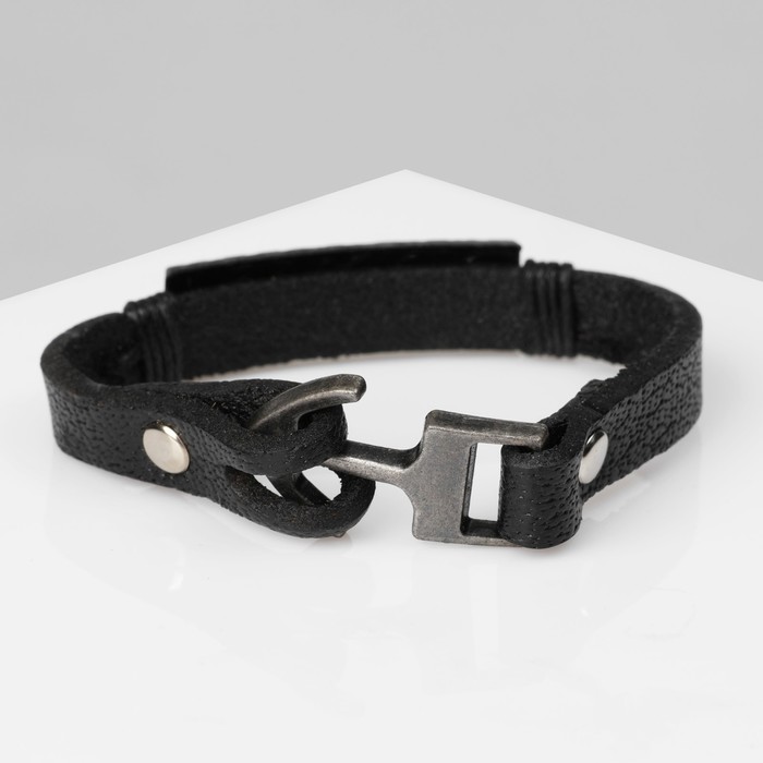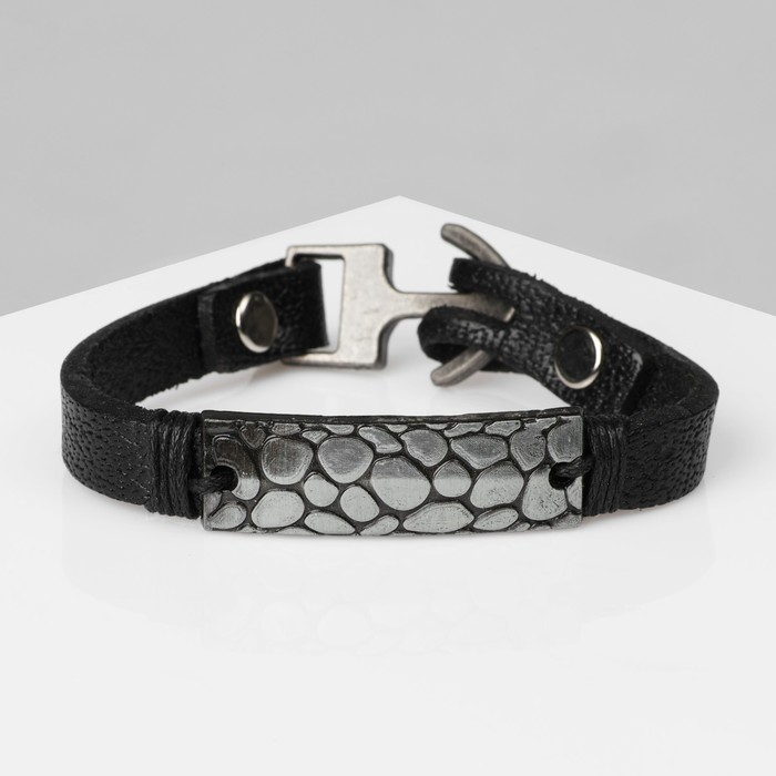Браслет кожаный «Кольчуга», чёрный с чернёным серебром, 21 см — Характеристики