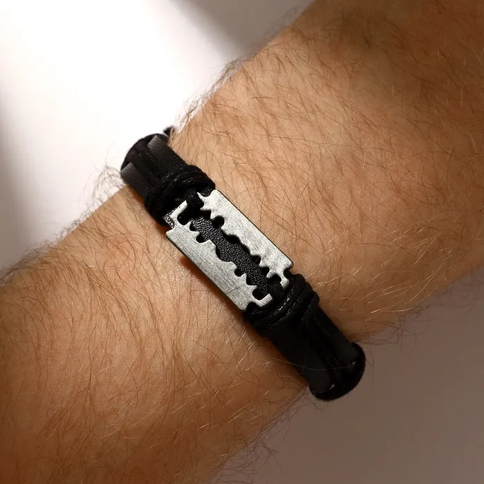 Диаметр 7 см и застёжка-затяжка обеспечивают комфортную посадку и возможность точной регулировки под любой запястный объем. Использование высококачественных материалов гарантирует долговечность и сохранение внешнего вида даже при ежедневном ношении. Такой браслет станет отличным дополнением к деловому стилю или повседневному образу, добавляя нотки брутальности и элегантности.