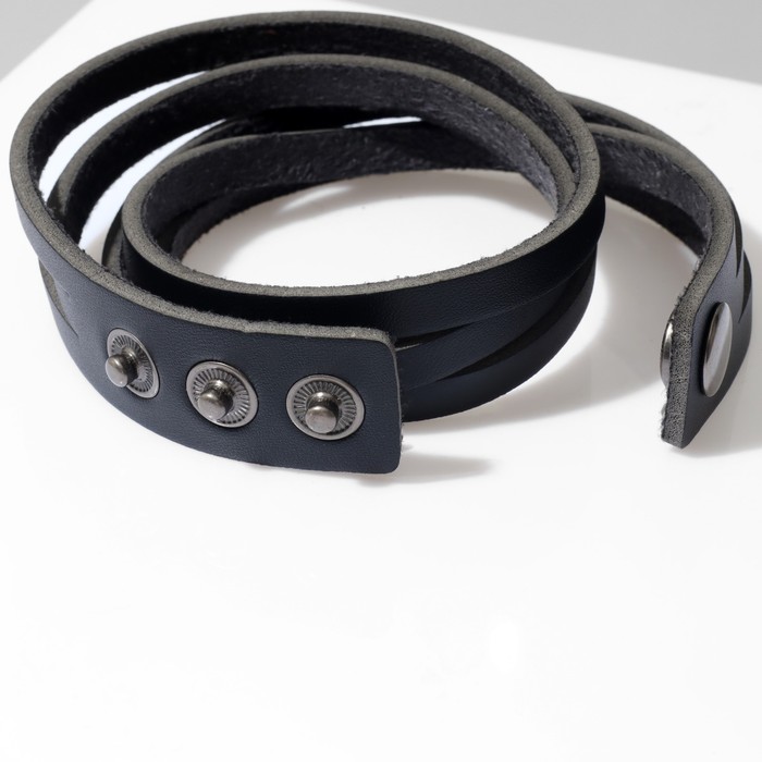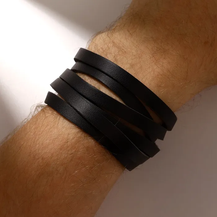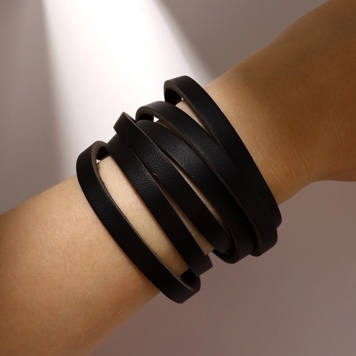 Этот кожаный браслет-обод для мужчин и женщин сочетает в себе стиль и выразительность. Его чёрный цвет и чернёное серебро создают эффектный контраст, а резной узор придает изделию особую индивидуальность. Длина 44 см позволяет носить его как свободный аксессуар или обернуть вокруг запястья для более насыщенного образа. Натуральная кожа обеспечивает долговечность и комфорт при ношении, а простая застёжка-кнопка делает использование удобным и быстрым.