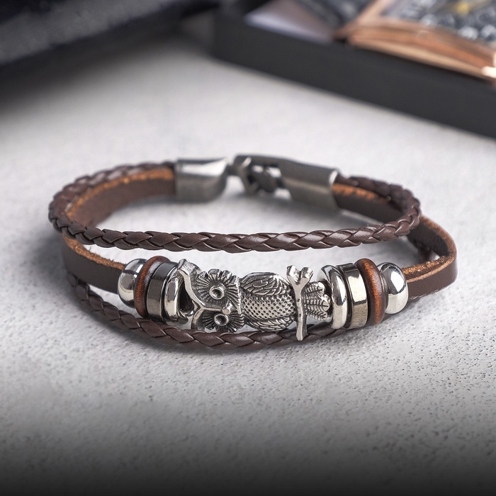 Браслет кожаный «Совушка», коричневый в чернёном серебре,20 см — Характеристики