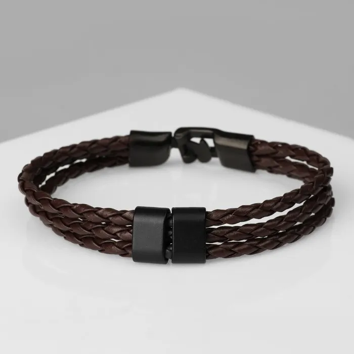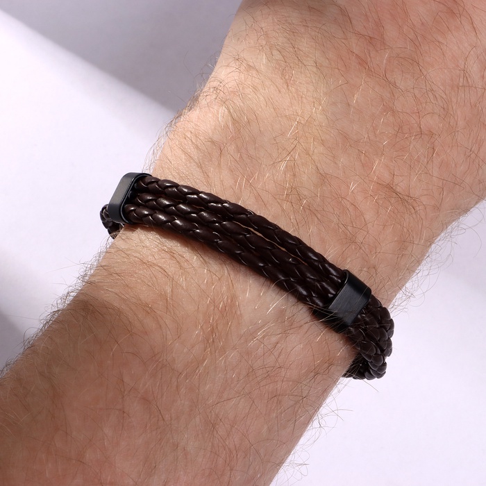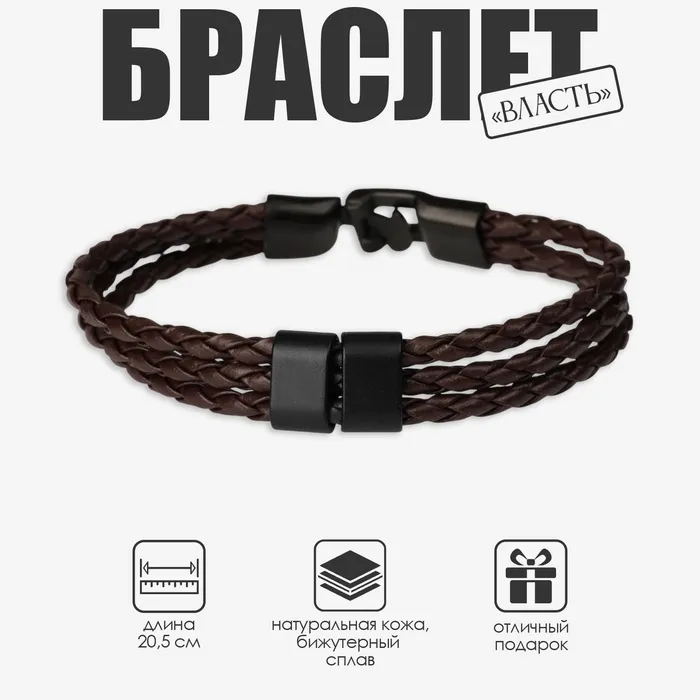 Браслет кожаный «Власть» трио, коричневый с чёрным металлом, 20.5 см — Характеристики
