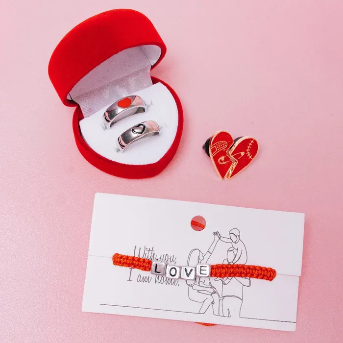 Браслет Love кубики, красный в чернёном серебре, 7 см — Характеристики