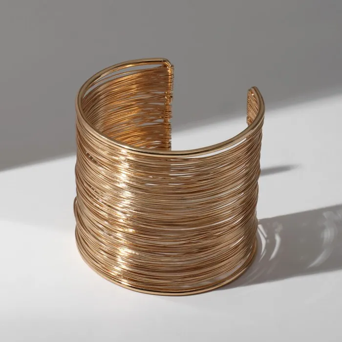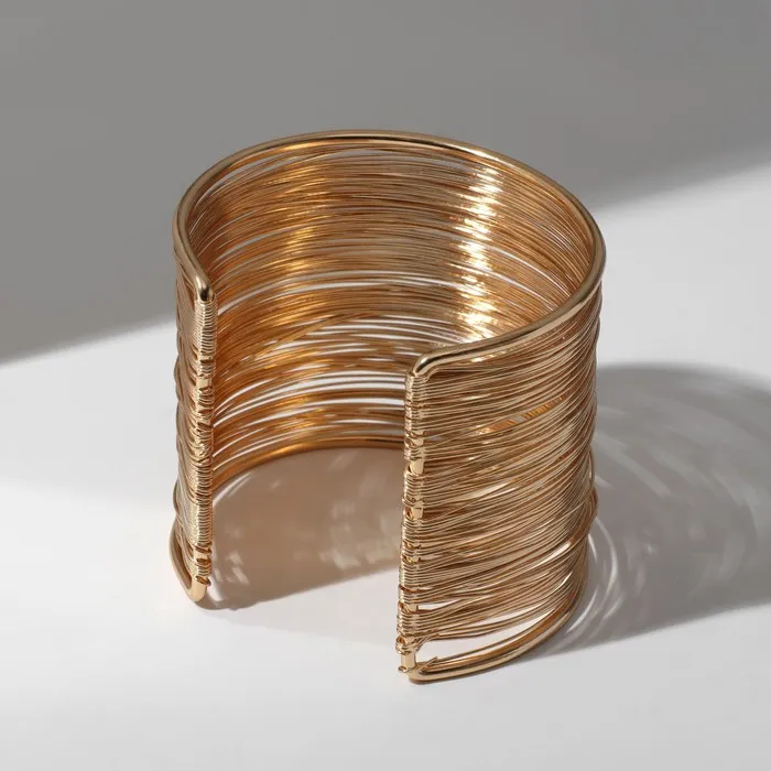 Браслет манжета «Нити», металл, цвет золото