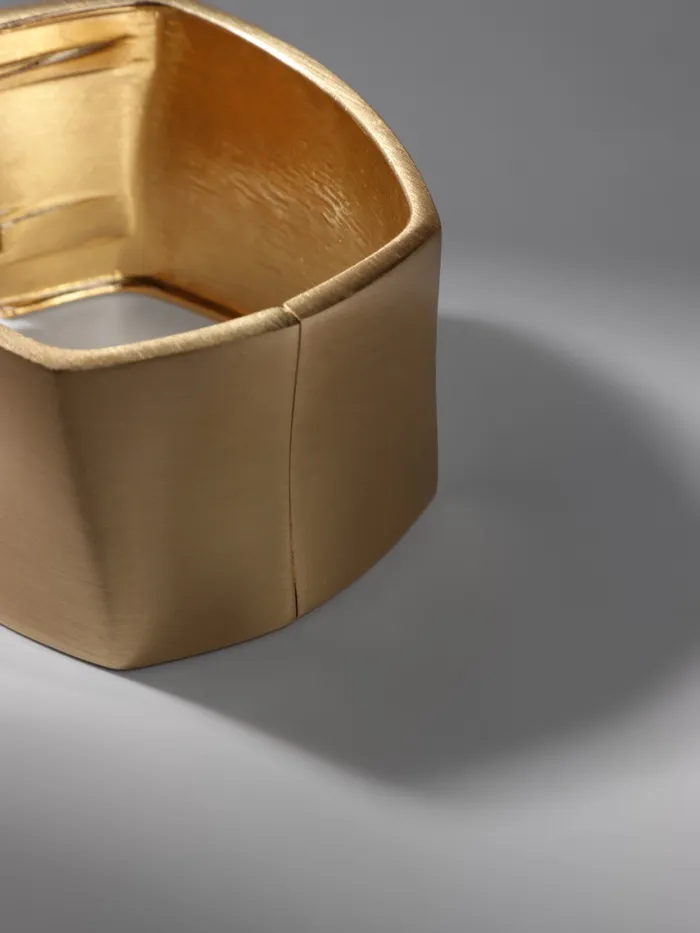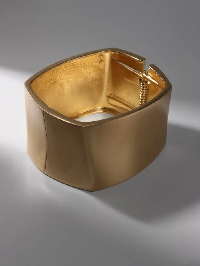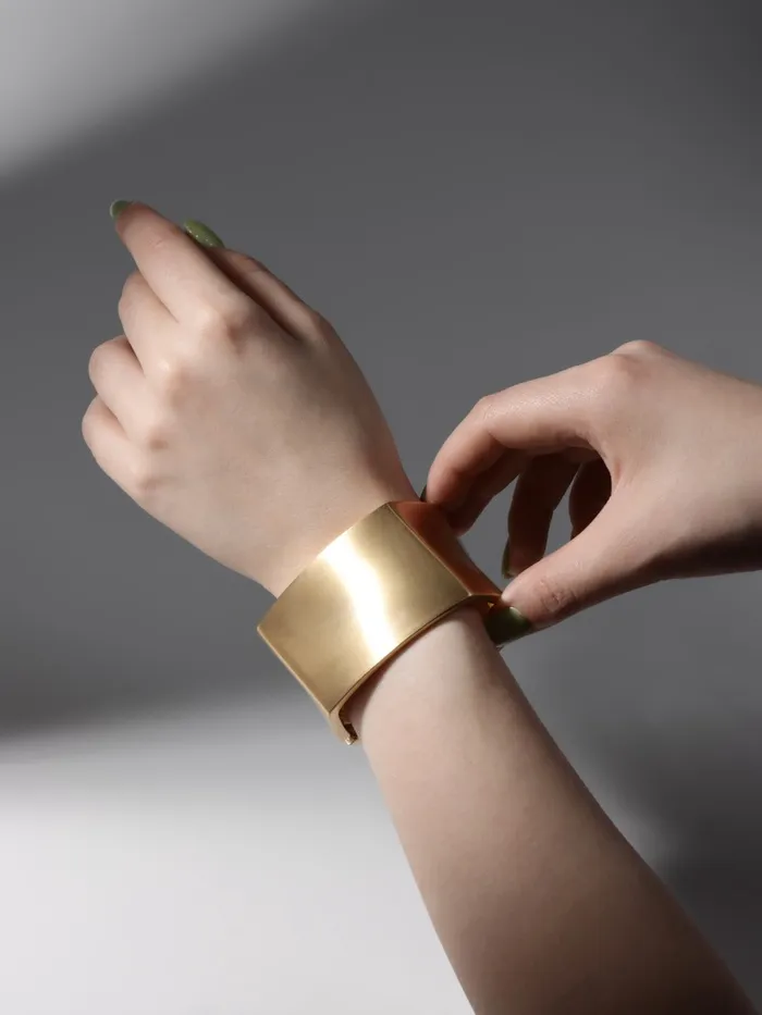 Браслет-манжета с уникальным дизайном «Плывущий квадрат» в золотистом оттенке — это украшение, которое подчеркнёт ваш стиль и добавит образу современности. Его необычная форма, напоминающая плавное движение геометрических фигур, создаёт эффект динамики и изысканности, делая аксессуар универсальным для любого случая. Изготовленный из металла, он сочетает в себе прочность и элегантность, сохраняя свой безупречный вид на долгие годы.