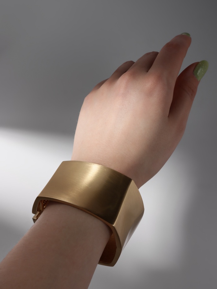 Этот браслет — идеальное решение для тех, кто ценит оригинальный дизайн и практичность. Раздвижная основа позволяет легко регулировать размер, обеспечивая комфорт при ношении. Золотистый оттенок и отсутствие лишних деталей делают его подходящим как для повседневного образа, так и для торжественных мероприятий.