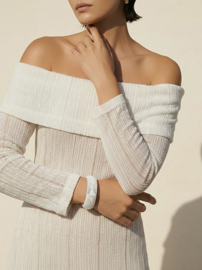 - Глубокий белый цвет: Блестящее покрытие и ровный оттенок помогают браслету выглядеть дорого и уместно как в дневном, так и в вечернем образе.