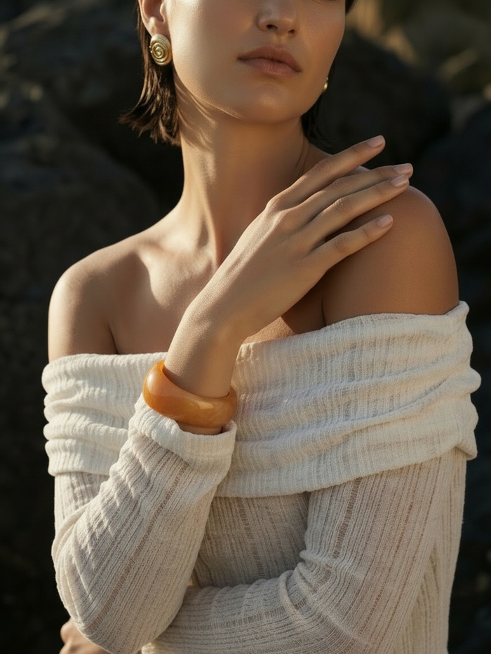 Теплые оттенки осени воплотились в дизайне широкого браслета-манжеты цвета капучино. Изготовленный из надежного акрила, он аккуратно повторяет контуры запястья, подчеркивая естественную красоту женской руки.