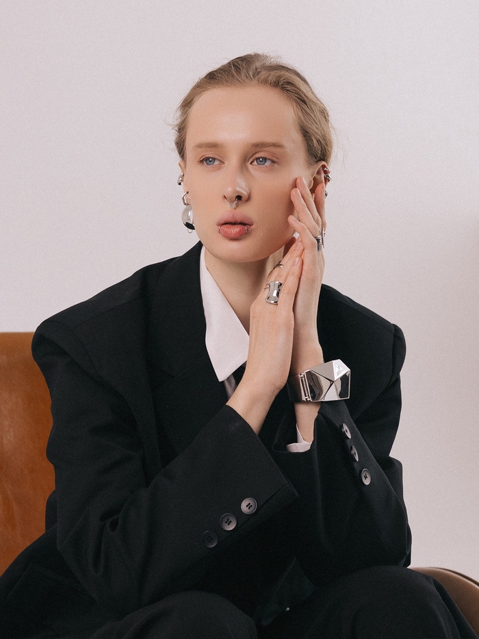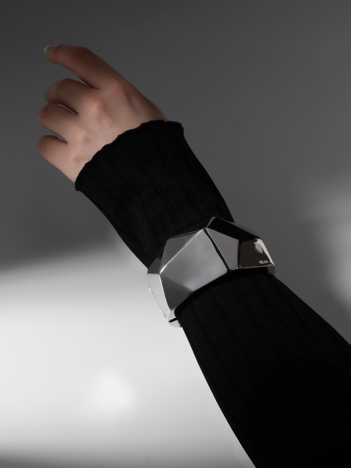 Браслет-манжета с геометрическим дизайном в серебристом оттенке — это украшение, которое подчеркнёт ваш стиль и добавит образу современности. Его чёткие линии и угловатые формы создают эффект смелости и индивидуальности, делая аксессуар универсальным для любого случая. Изготовленный из металла, он сочетает в себе прочность и изысканность, сохраняя свой безупречный вид на долгие годы.