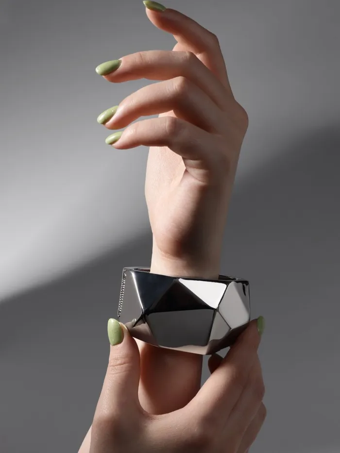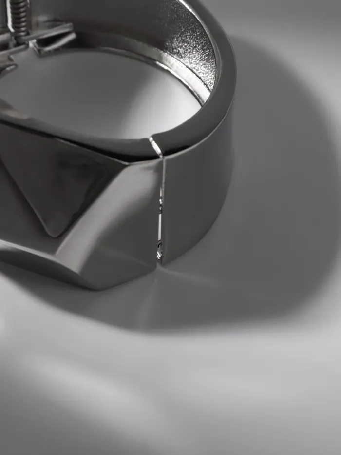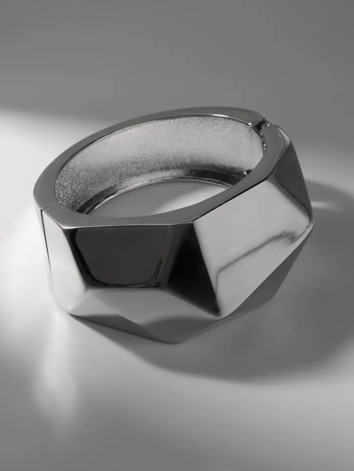 Браслет-манжета с геометрическим дизайном в серебристом оттенке — это украшение, которое подчеркнёт ваш стиль и добавит образу современности. Его чёткие линии и угловатые формы создают эффект смелости и индивидуальности, делая аксессуар универсальным для любого случая. Изготовленный из металла, он сочетает в себе прочность и изысканность, сохраняя свой безупречный вид на долгие годы.