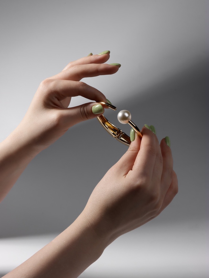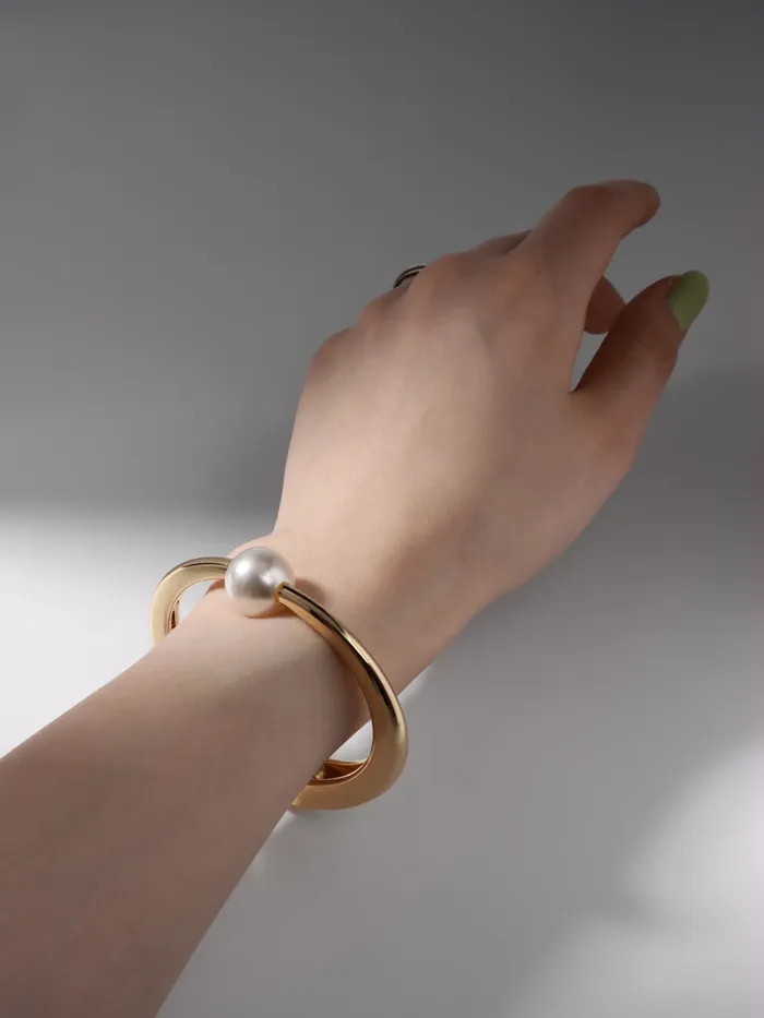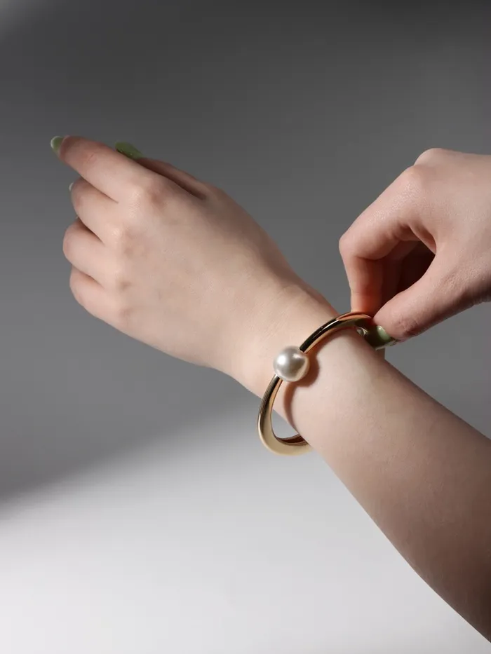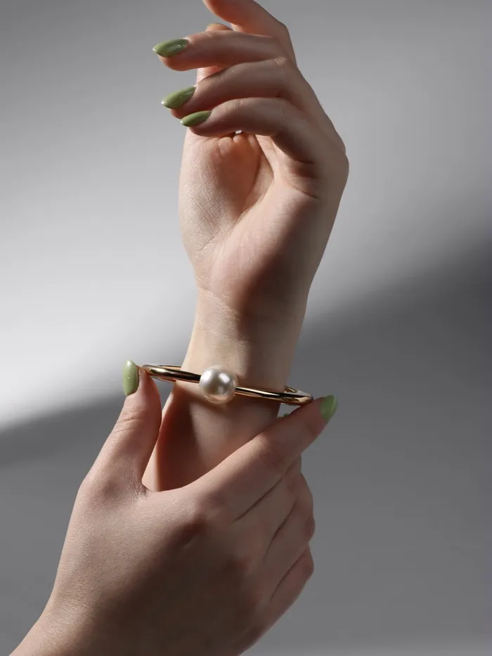 Браслет-манжета с жемчужными акцентами в золотистом оттенке — это украшение, которое придаст вашему образу нотку роскоши и изысканности. Сочетание золотистого металла и натурального жемчуга создаёт гармоничный баланс между современным дизайном и классической элегантностью. Этот аксессуар станет идеальным дополнением как для повседневного стиля, так и для торжественных мероприятий.