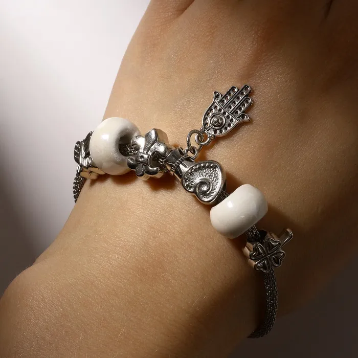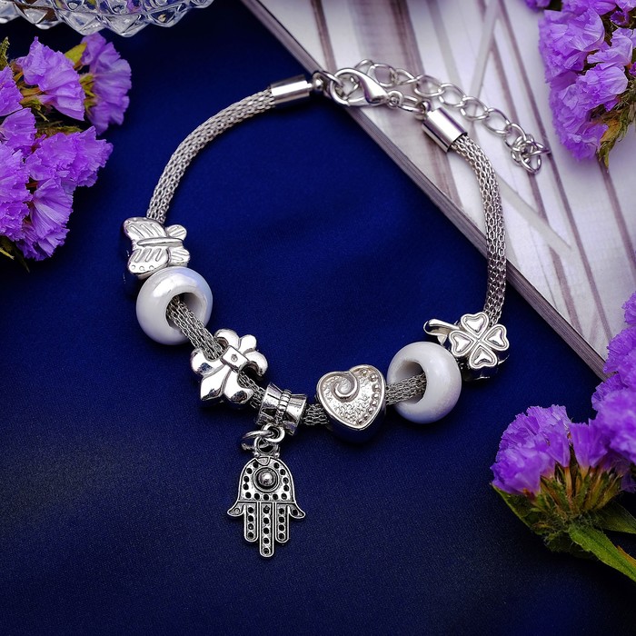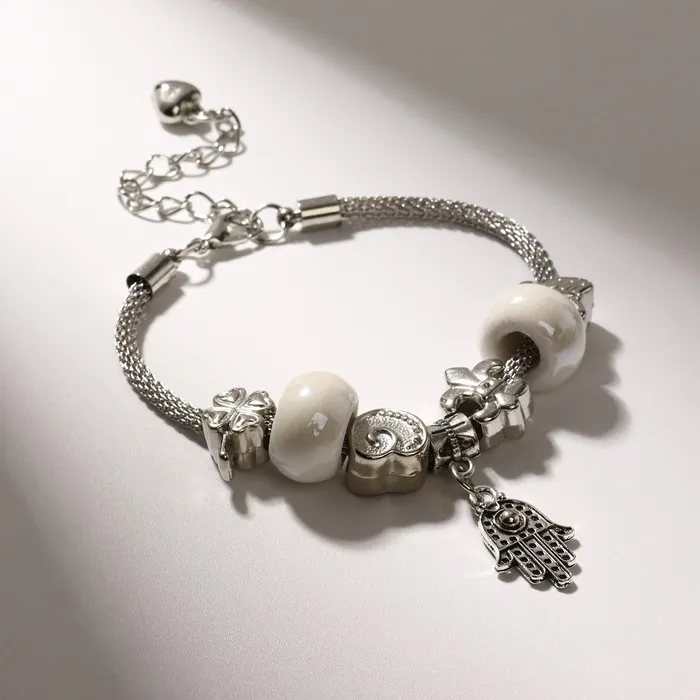 Браслет «Марджери» рука хамса, белый в серебре, L=19 см — Характеристики
