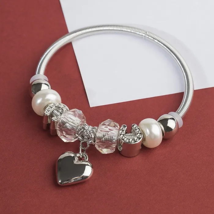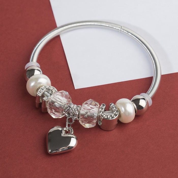 Браслет «Марджери» сердце, жемчуг, белый в серебре, d=6.5 см — Характеристики