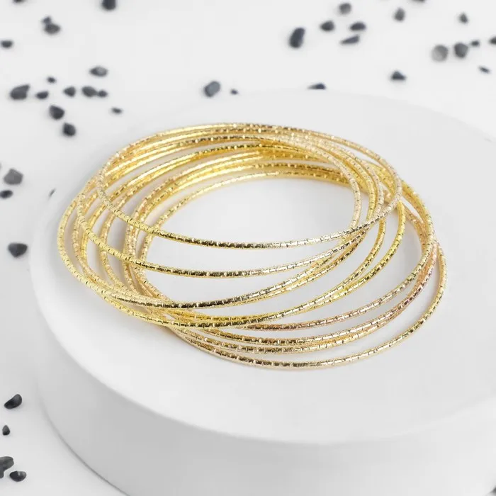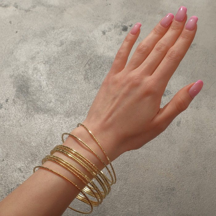 Браслет металл «Каркас» тонкая нить, набор 10 штук, цвет золото, 6.5 см