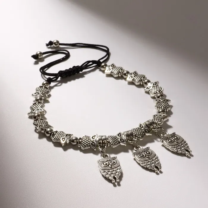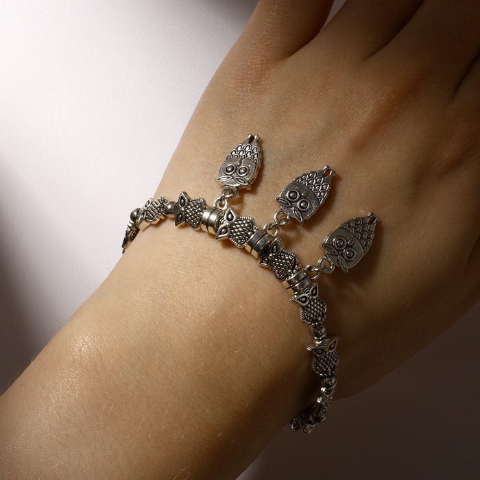 Браслет металл «Марджери» затягивающийся, сова, цвет серебро, 6см — Характеристики