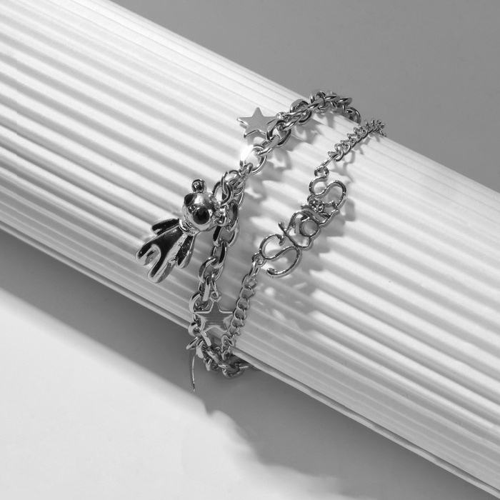 Браслет металл «Цепь» мишка STAR, цвет чёрный в серебре, L=16 см — Характеристики