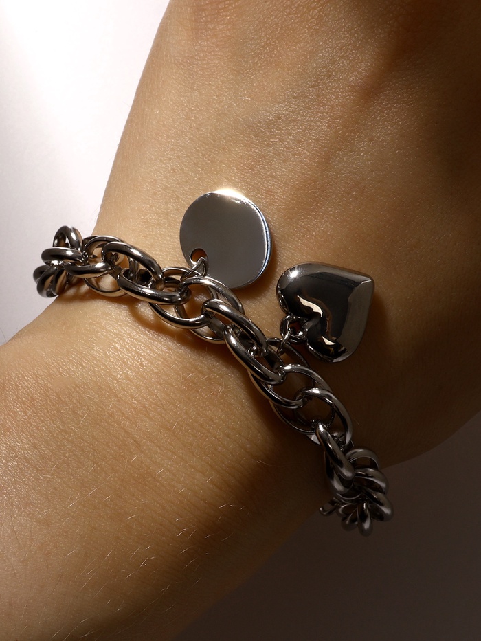 - Стильный дизайн: объёмное сердце и медальон делают браслет уникальным и привлекательным.
