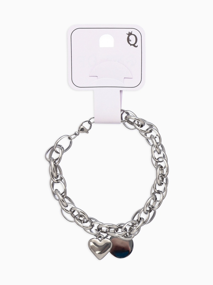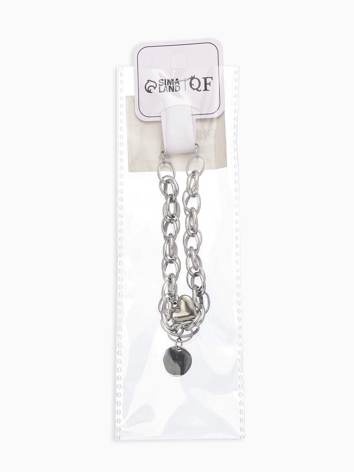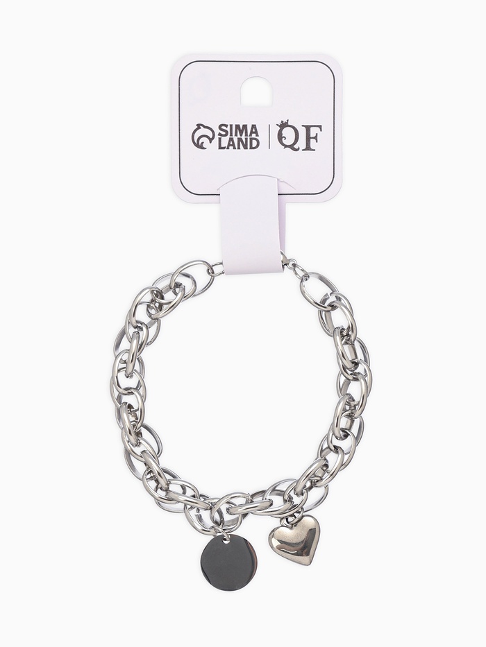 Браслет металл «Цепь» объёмное сердце и медальон, цвет серебро, L=19 см — Характеристики