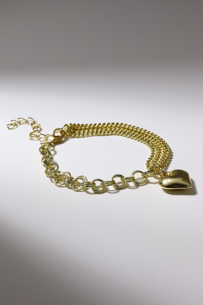 Откройте для себя уникальный браслет, который станет ярким акцентом в вашем образе. Этот золотистый браслет длиной 18 см выполнен из качественного металла и украшен объемным сердцем, что придаёт ему особую романтичность и стиль.