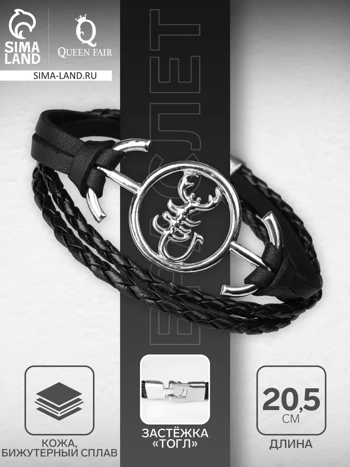 Браслет мужской «Атака» скорпион, цвет чёрный с серебром, 20,5 см — Характеристики